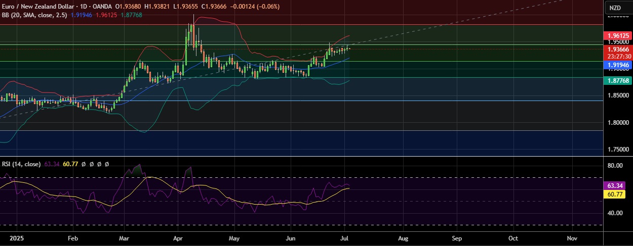 • EUR/NZD traded in tight range on Wednesday as investors monitored U.S. trade negotiations ahead of President Donald Trump's July tariff deadline.