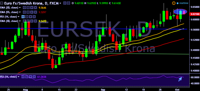 We prefer to go short on EUR/SEK around 9.6250, stop loss 9.6346 and target of 9.6037/9.5911.