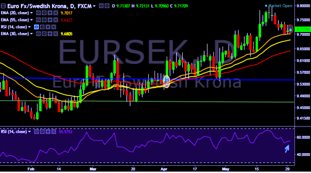 We prefer to take short position in EUR/SEK around 9.7250, stop loss at 9.7325 and target of 9.7000/9.6774.