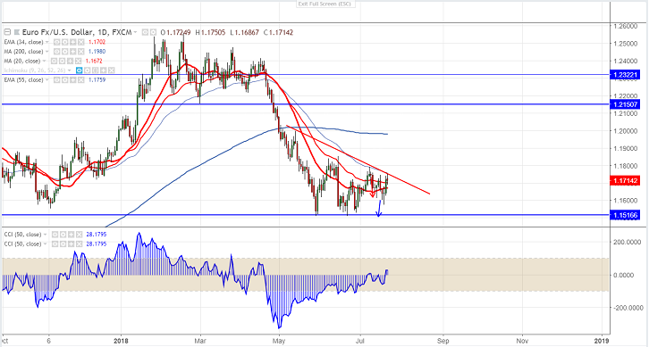 - On the higher side, near term resistance is around 1.1760 (55- day EMA) and any break above will take the pair to next level till 1.1800/1.18515.