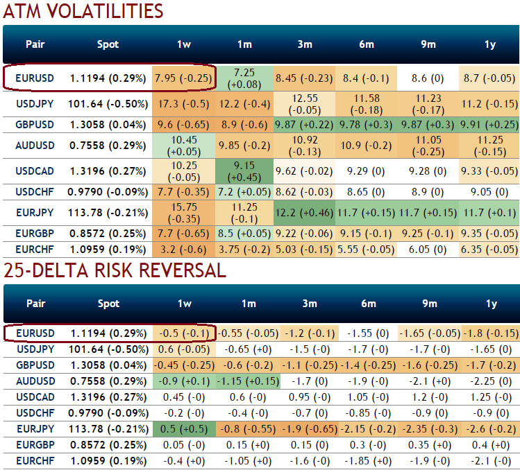 While current IVs of 1W ATM contracts of EURUSD are crawling reluctantly a tad below 8%, a massive drop from recent times, as a result option premiums likely to shrink away on account of time decay.