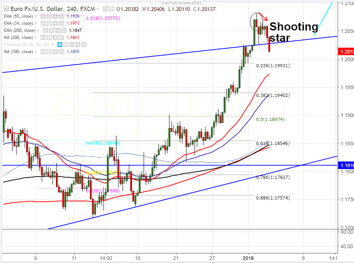 - EUR/USD hits high 1.20813 yesterday which his almost near to 2017 high of 1.20920. The pair has shown a minor sell-off till 1.20110 from that high. The market awaits major releases US ISM and Fed minutes meeting today for further direction.