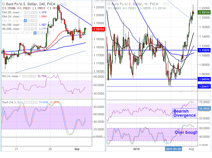 - In the weekly chart the pair has formed bearish divergence and stochastic also shows over bought.