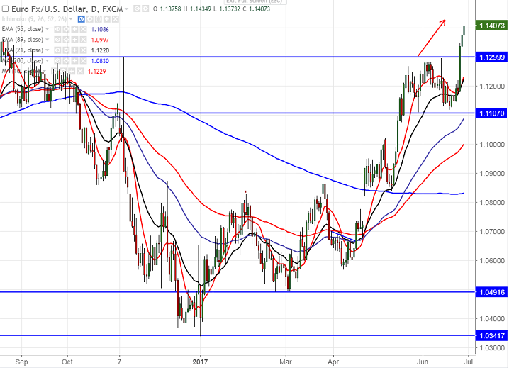 - The pair is trading higher for the past three trading days on account of hawkish comment by ECB President Draghi that threat of deflation gone and reflationary forces are at play . Markets are also doubtful that Fed rate hike on Sep due to weak economic data and also delay by Senate on health care vote.