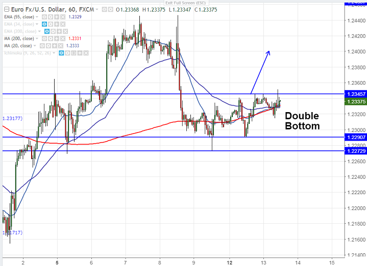 - EUR/USD has pared its early loss and jumped slightly above previous high of 1.23453. The pair has shown drastic jump after ECB’S Lane says that there is no concern about level of Euro. The pair jumped till 1.23512 and is currently trading around 1.23366.