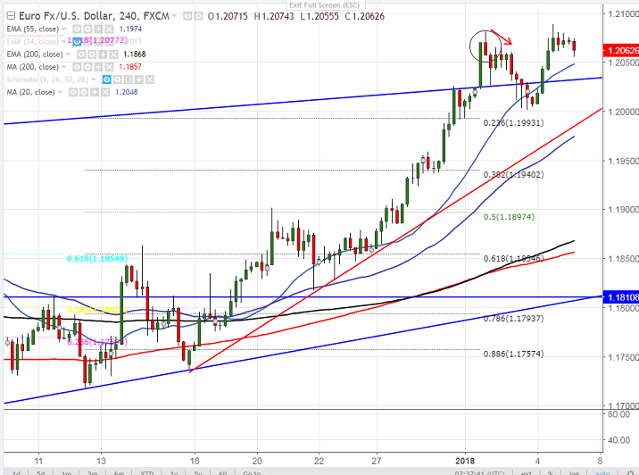 - Technically, near term is around 1.2045 (10- 4H MA) and any break below will drag the pair down till 1.2013 (4H Kijun-Sen)/1.1971 (55- 4H EMA)/1.1940/1.1900.Minor weakness can be seen only below 1.1800.
