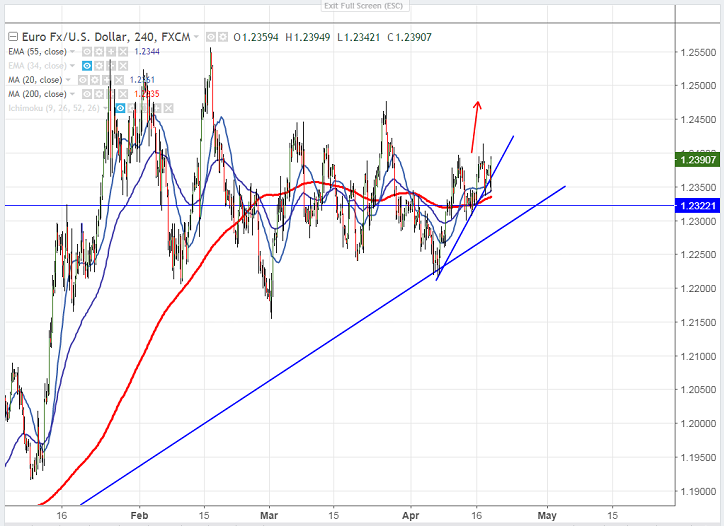 - EUR/USD has pared some of its losses after hitting low of 1.23400 level. The pair was trading slightly weak in European session after weak Eurozone inflation data. It is currently trading around 1.23892.