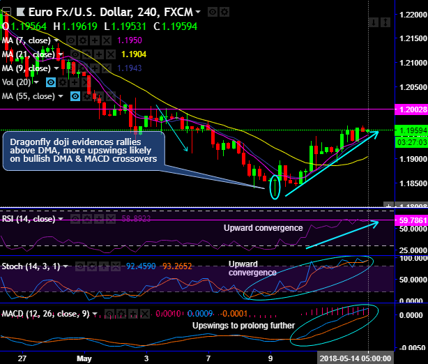 EURUSD rallies are spiking above DMAs ever since dragonfly doji occurred at 1.1856 levels, for now, more upswings seem to be likely on bullish DMA and MACD crossovers (refer daily plotting).