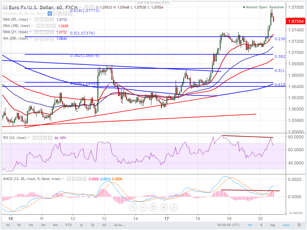 FxWirePro: EUR/USD faces strong resistance at 61.8% fibo, good to sell below 1.07390