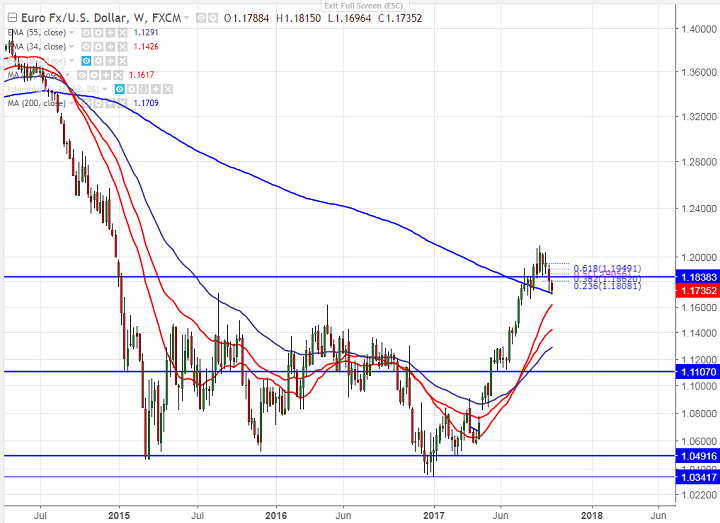 - EUR/USD has declined sharply after hitting high of 1.18324 on Sep 29th 2017 and declined sharply till 1.1700 after geo political tensions in Spain. Euro was trading weak against US dollar after voters in Catalonia was in favor of independence from Spain. About 90% of population voted for exiting Spain. In the next several days the news from Spain will be the main catalyst for EUR/USD movements.