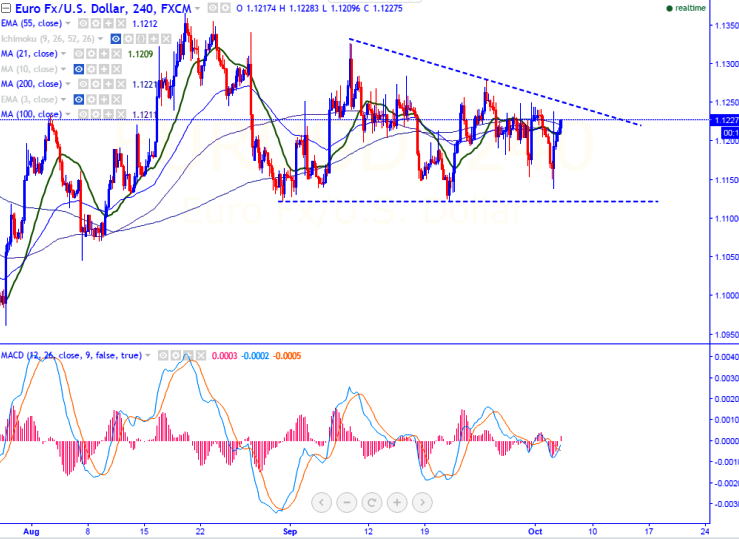 - EUR/USD has recovered sharply from the low of 1.11379 and jumped till 1.12385 yesterday. It is currently trading around 1.1224.