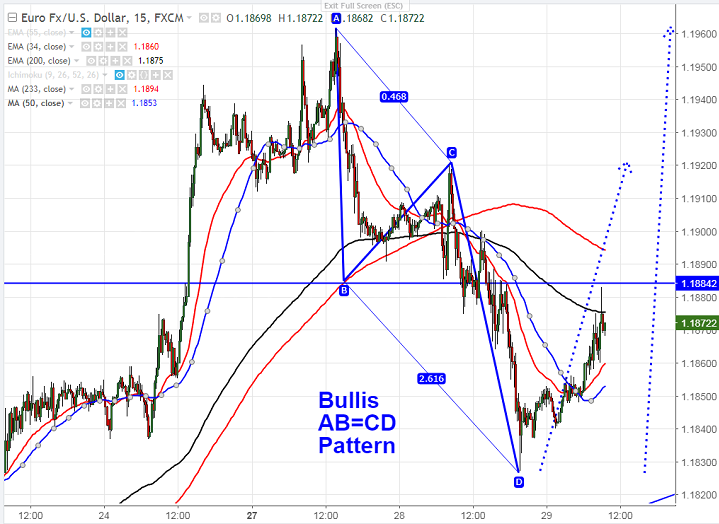 - Harmonic Pattern formed – Bullish AB=CD pattern.