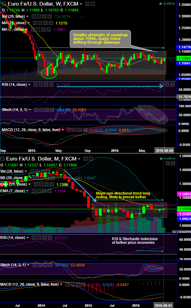 On a broader perspective, long term trend has still been in the range of 1.05 to 1.16 levels that have been persisting since February 2015 (see rectangular areas in monthly charts).