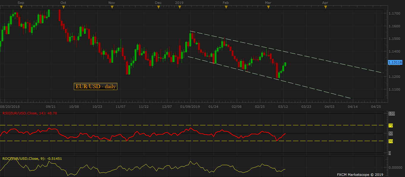 - Since finding a floor around 1.118 area, the euro has moved higher by 130 pips and trading at 1.131 area.