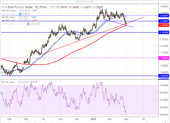 - The pair is facing major near term support is around 1.2010 (200- day MA) and any break below will drag the pair down till 1.1945/1.1900.