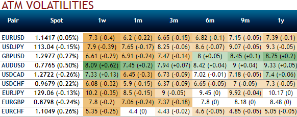 Towards the top of the EURUSD range: Stay long in EURUSD via 6m call strike 1.15, European KI on the realized volatility at 9% Indicative offer: 0.60% (vanilla: 1.61%, volatility swap: 7.6%, spot ref: 1.1443).