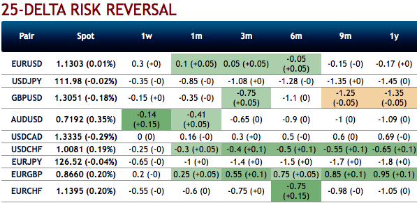 Considering the bullish (in near-term) and bearish technical environment (in long-term) and most importantly, the skews in the sensitivity tool indicate hedging sentiments for the bearish risks, these risks are coupled with bearish risk reversal numbers. Courtesy: Sentry & Saxo