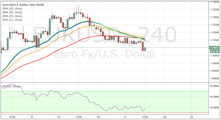 - The pair hit daily lows at 1.1070 levels before recovering to trade at 1.1101 level.