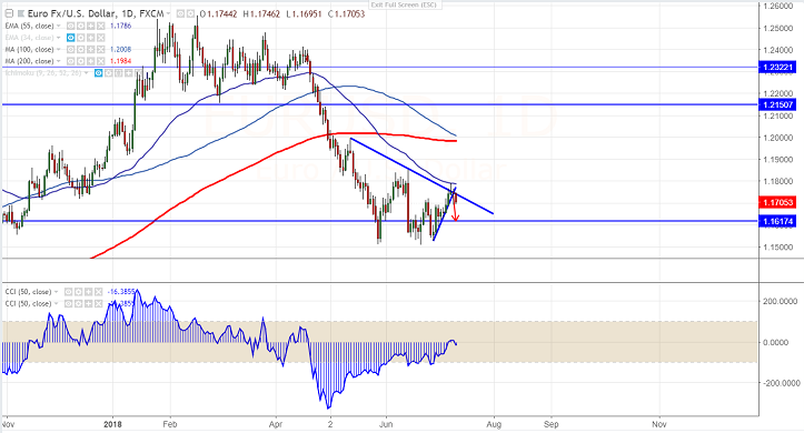 - EUR/USD’s near term support is around 1.16500 (20- day MA) and any break below will drag the pair to next level till 1.1600/1.1500.Any break below 1.1500 confirms minor weakness and decline till 1.1400/1.13600 is likely.