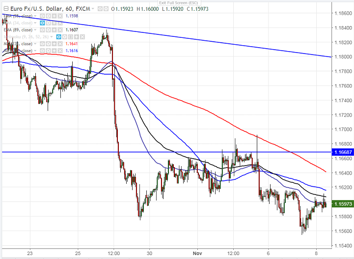 - EUR/USD has shown a minor jump after hitting low of 1.15543 on rumor of slight delay in corporate tax cut. The pair jumped slightly till 1.1600 and is currently trading around 1.15990.