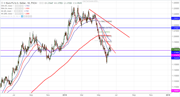 - EUR/USD has shown a slight uptick ahead of US Fed monetary policy. US Donald Trump and Kim historic first meeting happened yesterday in Singapore and they have signed a denuclearization deal. Markets eye US FOMC policy decision which is to be concluded today. Fed is expected to hike 25 basis point and any hawkish statement will take the drag the pair. The pair hits intraday low of 1.17703 and is currently trading around 1.17631.
