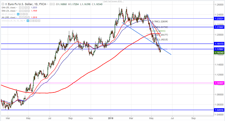 - EUR/USD pared its early gains and has broken previous week low of 1.16458. The pair hits intraday low of 1.16398 and is currently trading at 1.16429. The political uncertainty in Italy is the main event to be watched. Italian President Sergio Mattarella has rejected Finance minister candidate Papolo Savona Mattarella for the good the good of country and financial “savings of families”. With major European and US markets remain closed. Market is expected to remain silent. It is currently trading around 1.16570.
