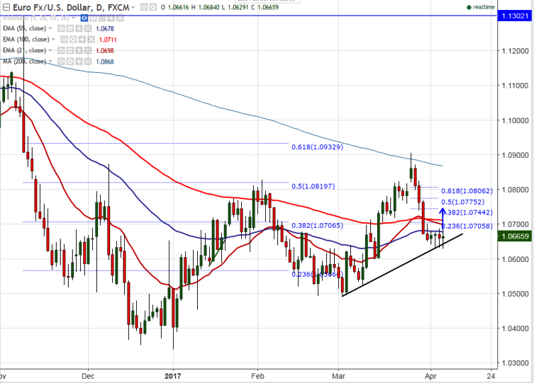 - On the lower side, any close below trend line support at 1.06300 will drag the pair till 1.0600/1.05250 (Mar 9th 2017 low)/1.04940 (Mar 2nd low).