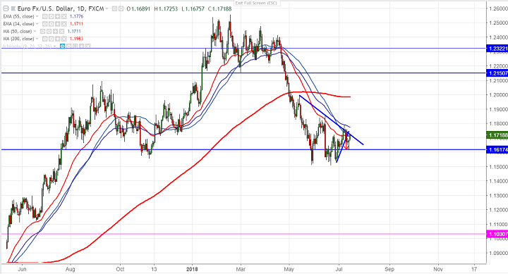 - EUR/USD’s near term support is around 1.16500 (20- day MA) and any break below will drag the pair to next level till 1.1600/1.1500.Any break below 1.1500 confirms minor weakness and decline till 1.1400/1.13600 is likely.