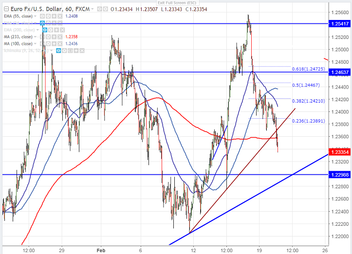 - EUR/USD is continuing its weakness for third consecutive days on rising US 10 year yield. The pair hits low of 1.23375. It is currently trading around 1.23350.