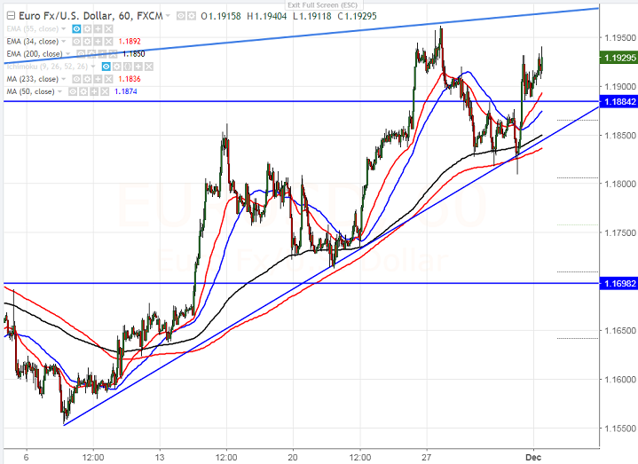 - Technically the pair is facing resistance at 1.19615 (Nov 27th high) and any break above will take the pair to next level till 1.2000/1.2090.
