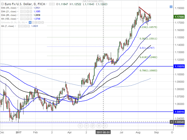 - The near term resistance is around 1.1850 and any break above will take the pair till 1.19103 (Aug 8th 2017)/1.19391 (1.13% retracement of 1.19103 and 1.16880)/1.1200.