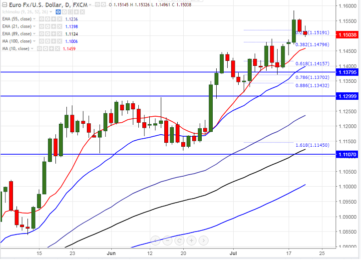 - Euro has been declining for past two days ahead of ECB monetary policy meeting .The pair hits new 52 week high at 1.15830 on Jul 18th 2017. The central bank is expected to keep policy rates unchanged. There are speculation that ECB could announce tapering in the month of Sep or Oct.