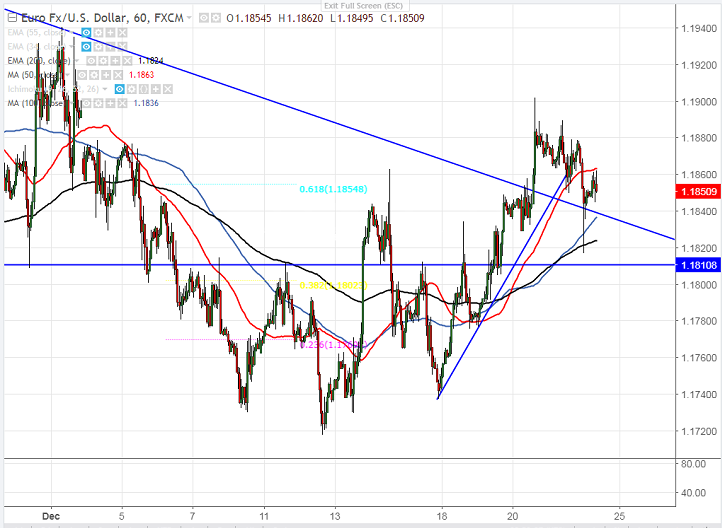 - Technically, the pair is facing strong resistance at 1.19612 (Nov 27th 2017 high) and any minor bullishness can be seen only above that level. Any convincing break above 1.19612 will take the pair to next level till 1.2000/1.2090.