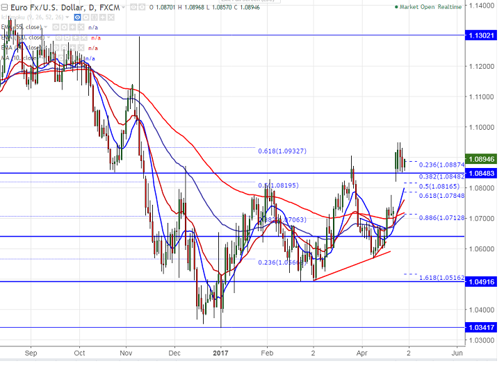 - On the lower side, any break below 1.08500 bottom formed after French election will drag the pair down till 1.08200/1.07850 (61.8% retracement of 1.06822 and 1.09508)/1.0745 (21 EMA).