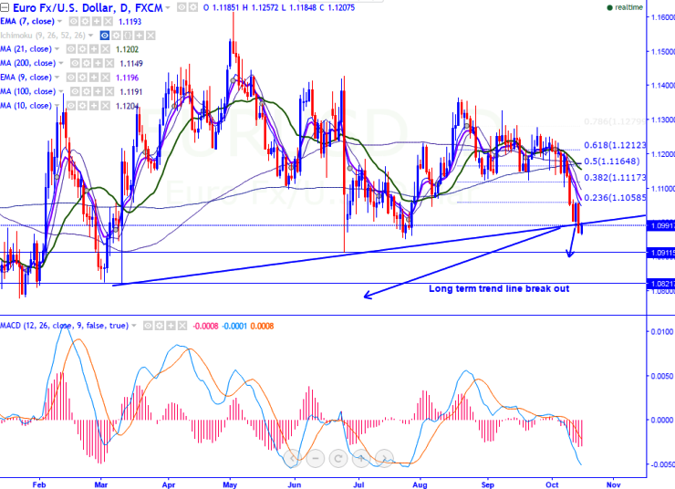 - The pair breaks major trend line support 1.09850 and declined till 1.09638 at the time of writing.