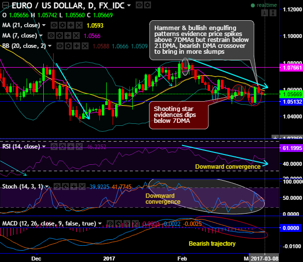 EURUSD major trend has been sliding through sloping channel (monthly terms). While last two days the downswings are dragging below 7DMA despite the engulfing pattern that could be deceptive to the aggressive bulls as the momentum is losing in its traction (see daily charts).