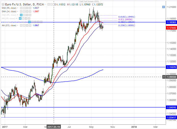 - ECB has kept its interest rates unchanged in Sep monetary policy meeting and but not mentioned any tweaks to forward guidance. In the current minutes meeting investors will look for clues for QE tapering.