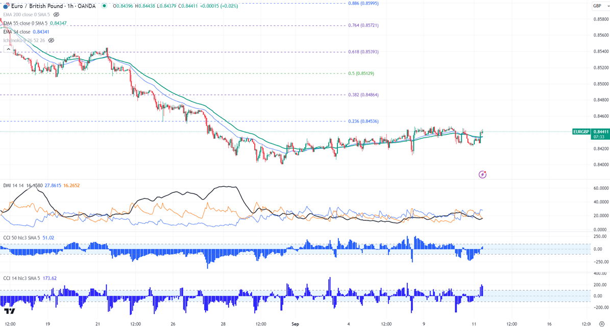EURGBP gained momentum after weak UK GDP data. It hit a high of 0.84438 at the time of writing and is currently trading around 0.84406.