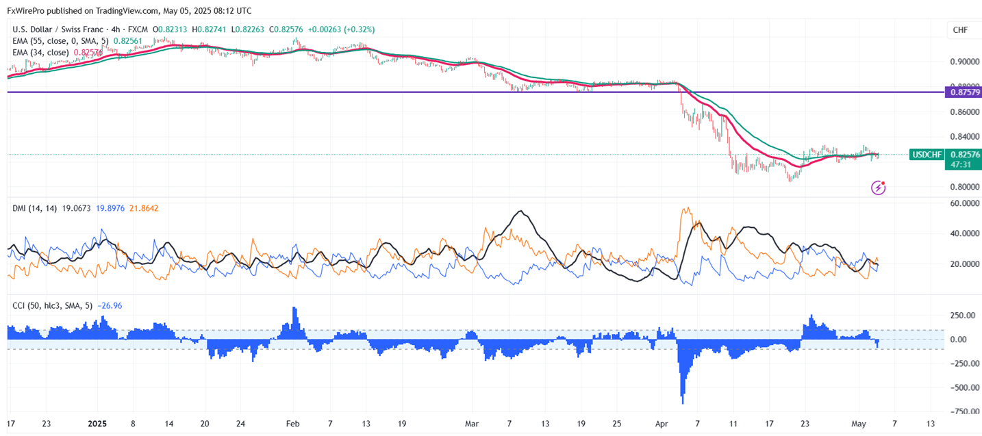 The pair is trading below the 34-EMA and 55-EMA on the 4-hour chart indicates a minor down trend. The immediate resistance is at 0.8280 any break above targets 0.8300/0.8350/0.8380/0.8500.
