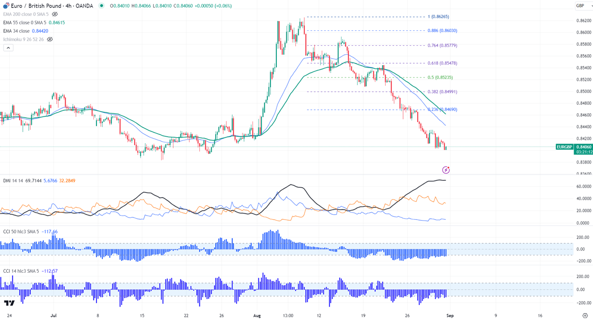 The near-term resistance is around 0.84210 (55 -H MA), a breach above targets 0.8435/0.8450/0.84610. The immediate support is at 0.8400, any violation below will drag the pair to 0.83830 (Jul 17th, 2024). Any close below 0.83830 confirms the resumption of a major downtrend.