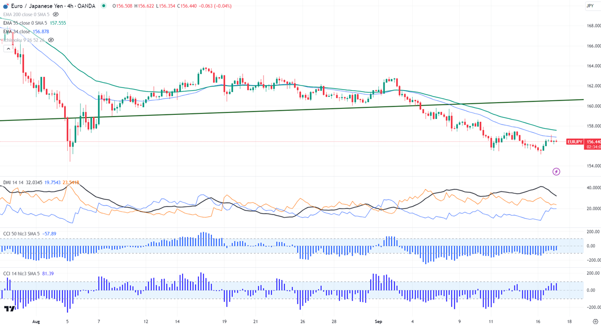 EURJPY showed a minor pullback with intraday bias remaining neutral. It hit a low of 156.15 at the time of writing and is currently trading around 156.47.