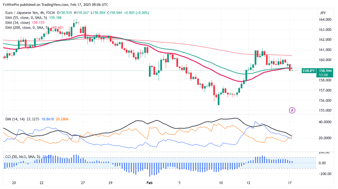 The EUR/JPY pair is trading above the 34,55 EMA and 200-4H EMA in the 4-hour chart.