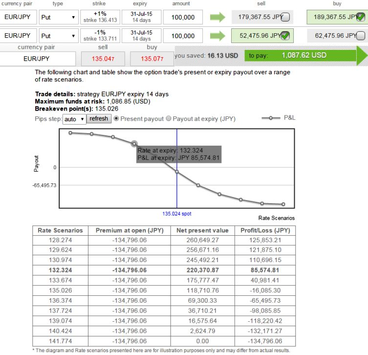 Use this position over a necked long put only when necked puts are overpriced or the underlying currency is expected to move marginally lower.