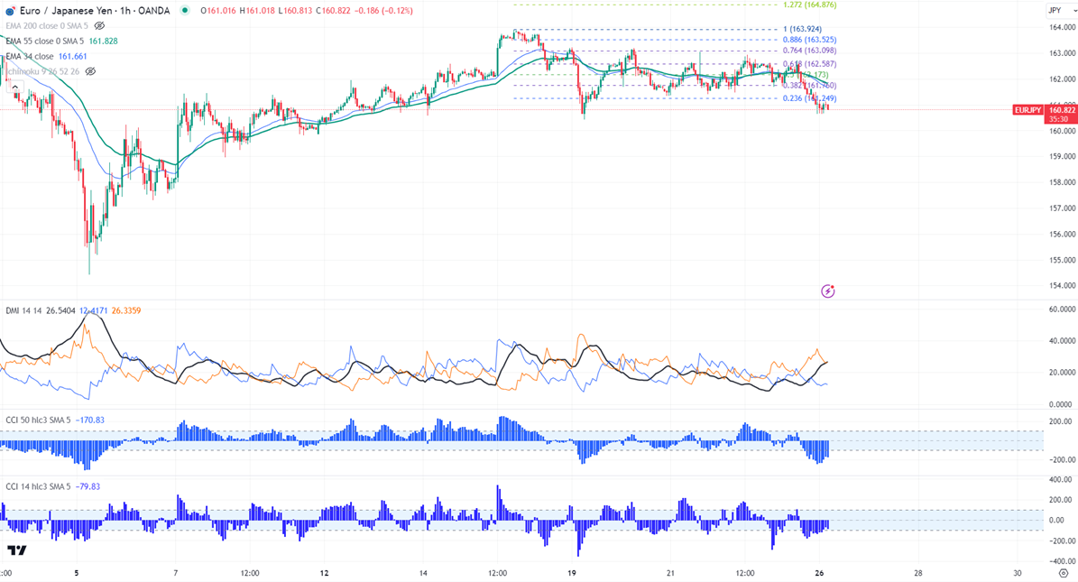 EURJPY declined after the ECB monetary policy meeting minutes.It hit a low of 160.66 and is currently trading around 160.97.