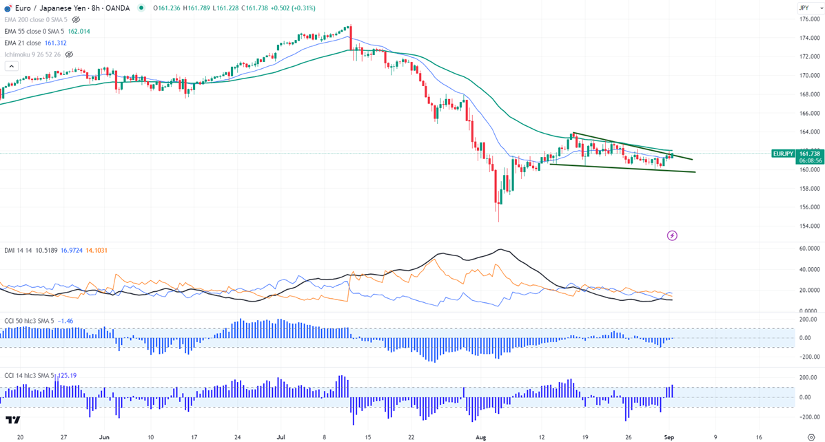 EURJPY jumped more than 50 pips from an intraday low of 161.02. It hit a high of 161.78 at the time of writing and is currently trading around 161.72.