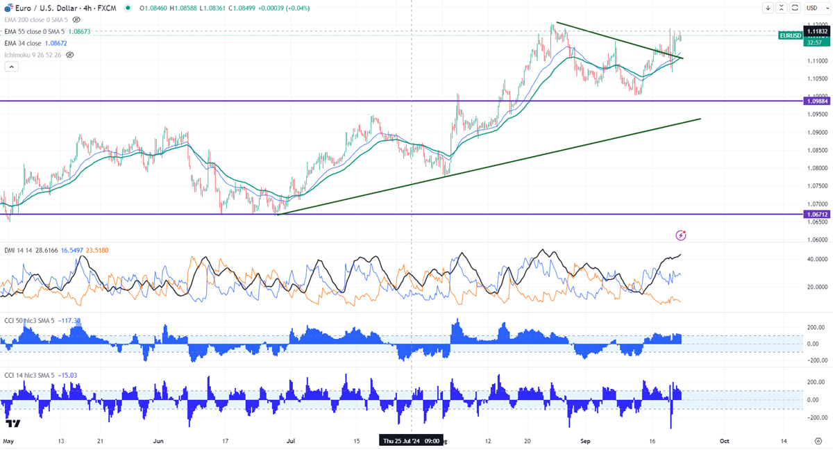The pair trades above short-term (34 AND 55 EMA) in 4-hour chart. Major resistance to watch- 1.1190/1.12050. Bullish continuation only above 1.1280.