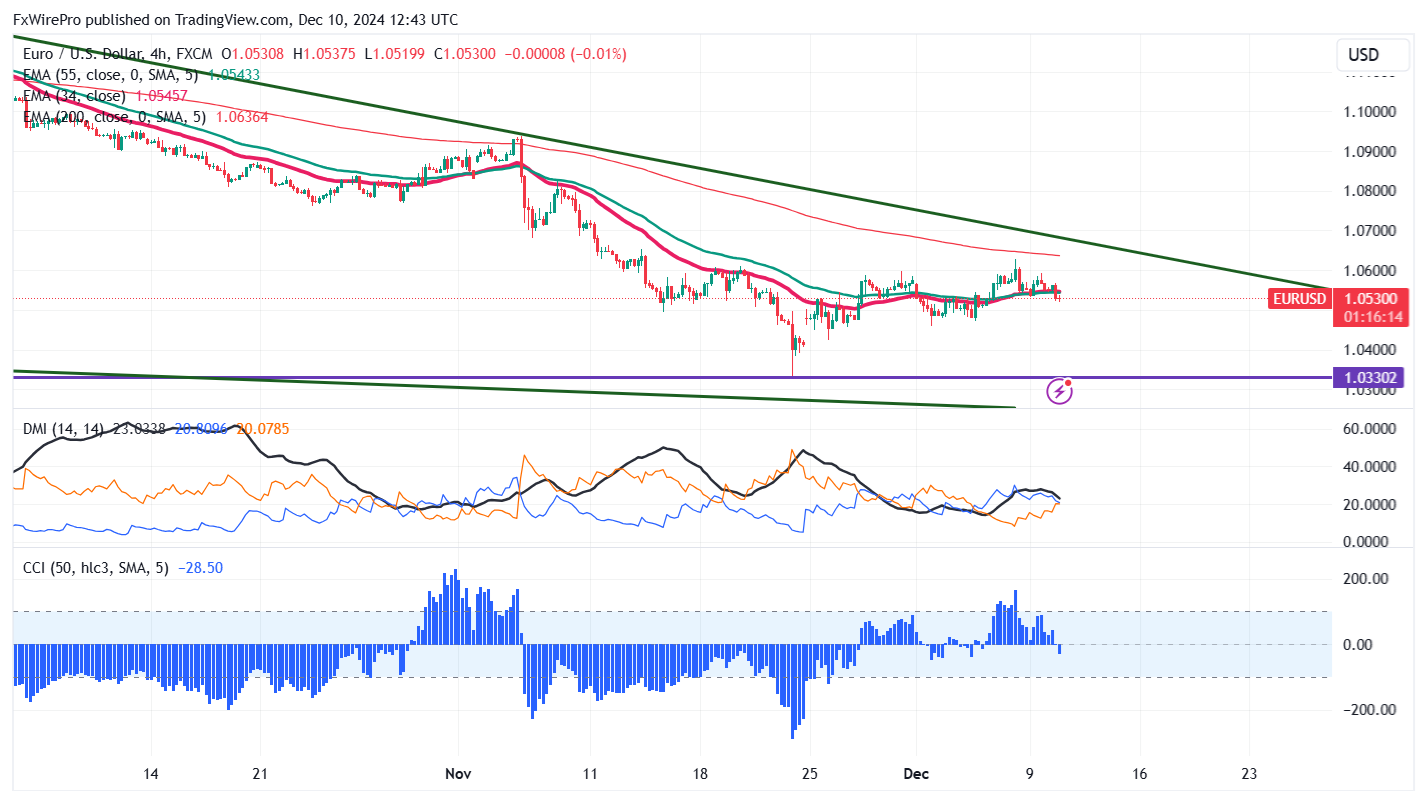 EUR/USD lost its shine on board-based US dollar buying. It hit a high of 1.06293 at the time of writing and is currently trading around 1.05199.