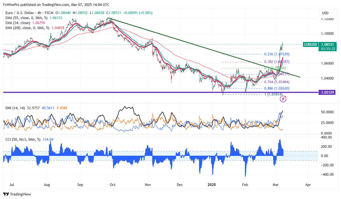 EUR/USD gained slightly after the dismal US NFP. It hit an intraday high of 1.08882 and currently trading around 1.08623.