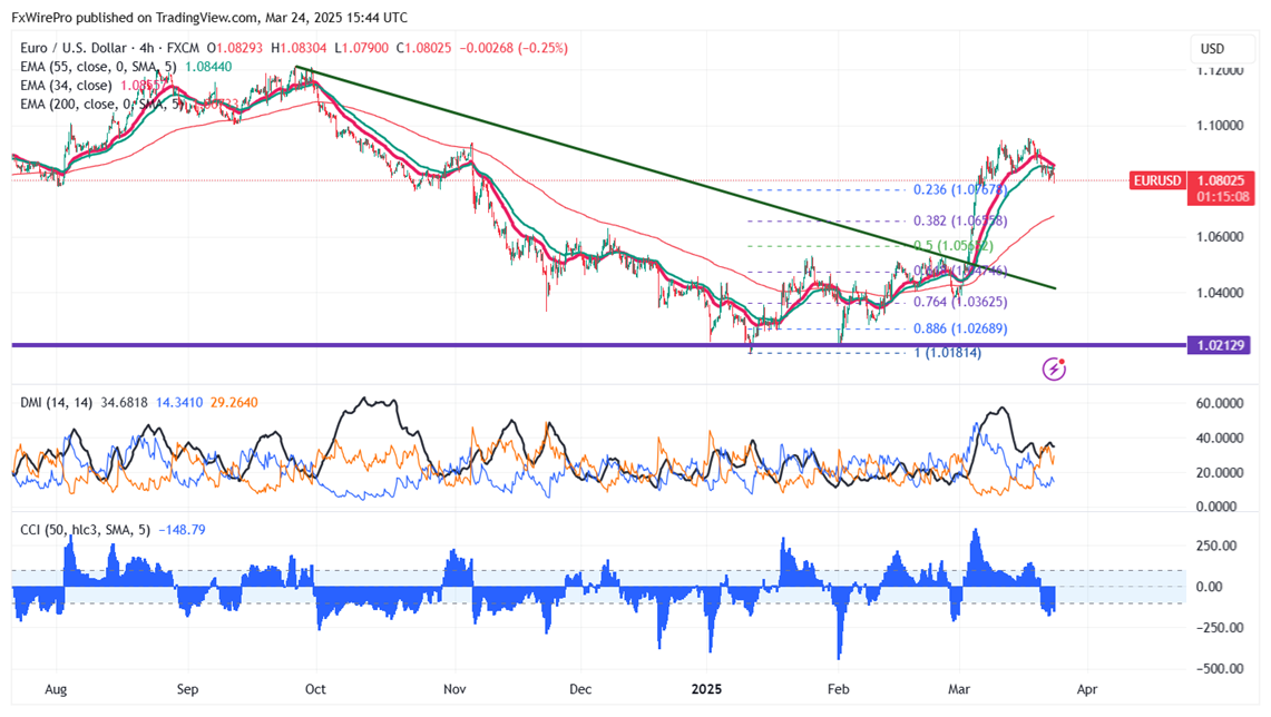 EUR/USD pared some of its gains after mixed US PMI data. It hit an intraday low of 1.07900 and currently trading around 1.08033.