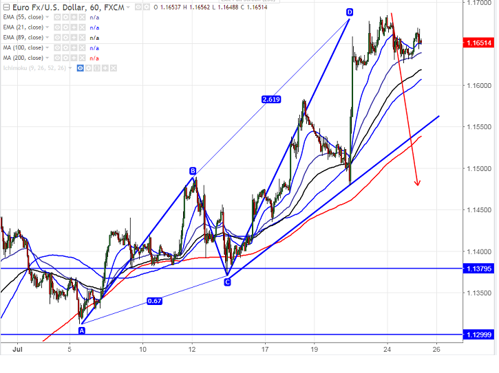 - The pair has formed Bearish AB= CD pattern in the hourly chart and potential reversal Zone is around 1.16840. Any break above will take the pair till 1.1740 (Aug 2015 high) /1.1745/1.18000.